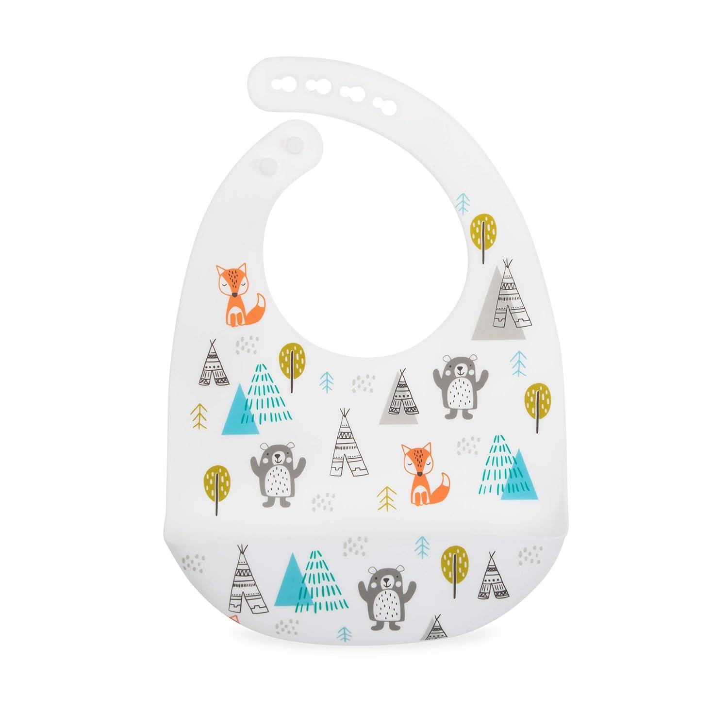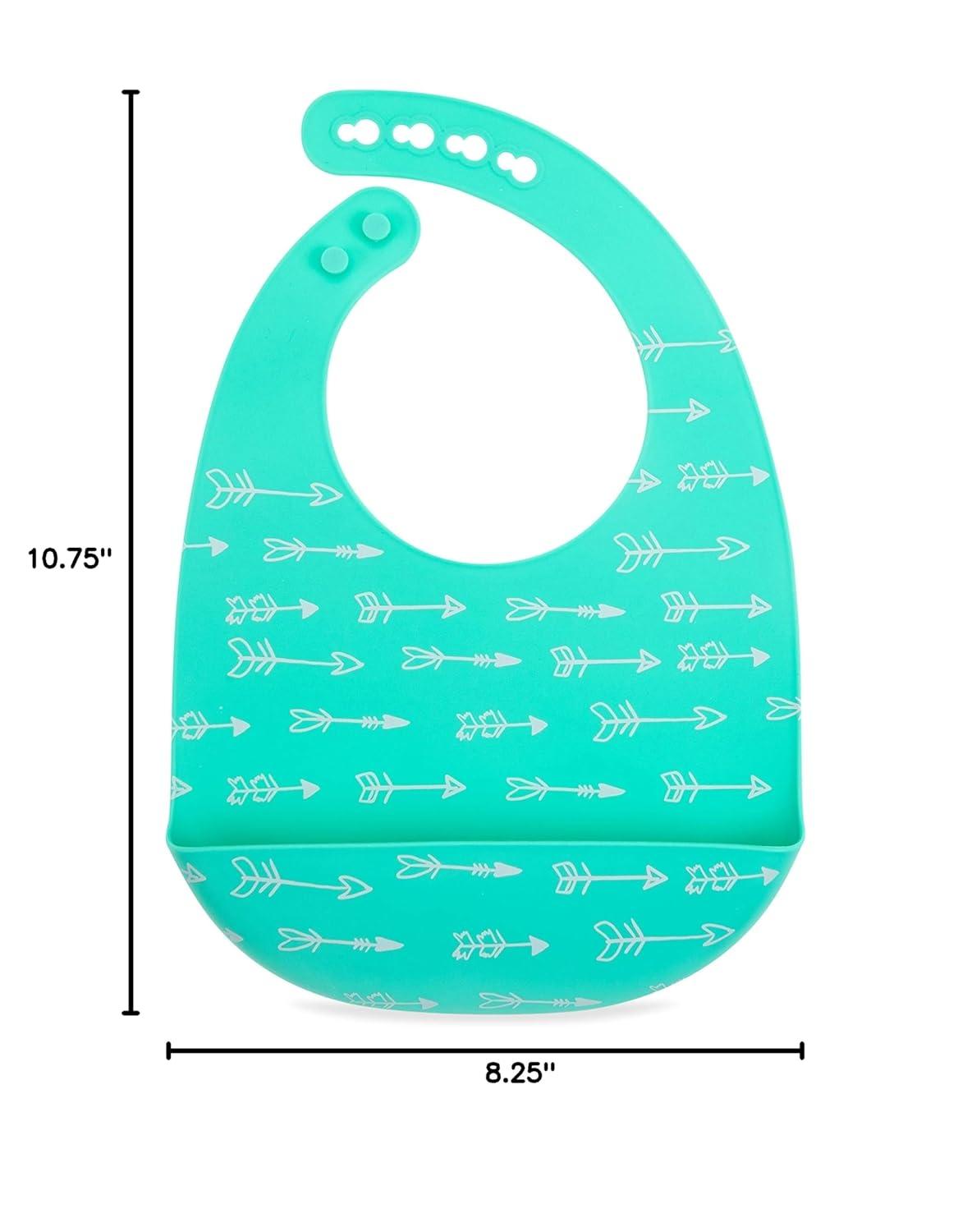 Nuby 2 Pack Adjustable Easy Clean Soft Silicone Bibs with Scoop, Triangles & Dinosaurs(Arrows & Bears/Foxes)