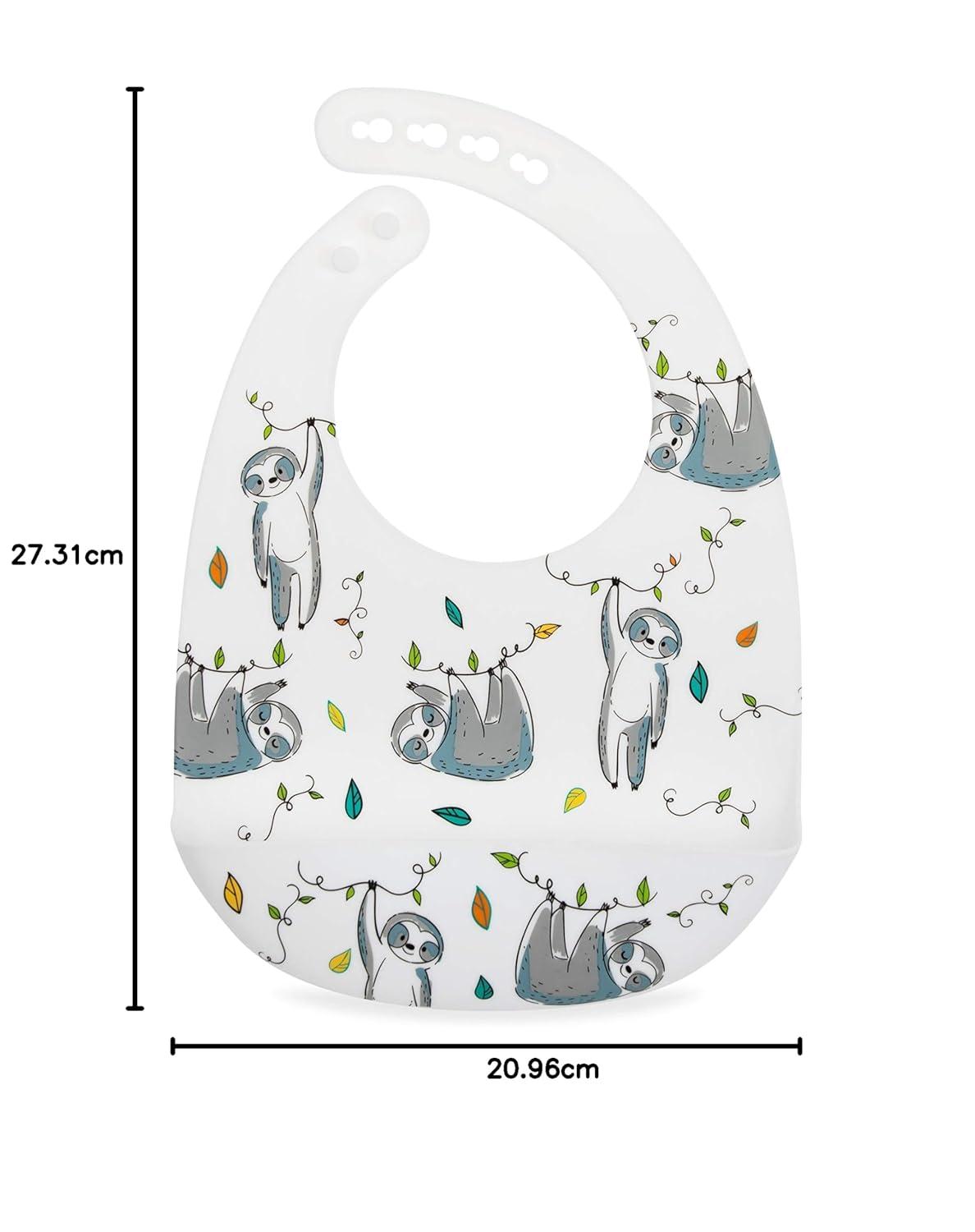 Nuby 2 Pack Adjustable Easy Clean Soft Silicone Bibs with Scoop, Triangles & Dinosaurs(Leaves & Sloth)
