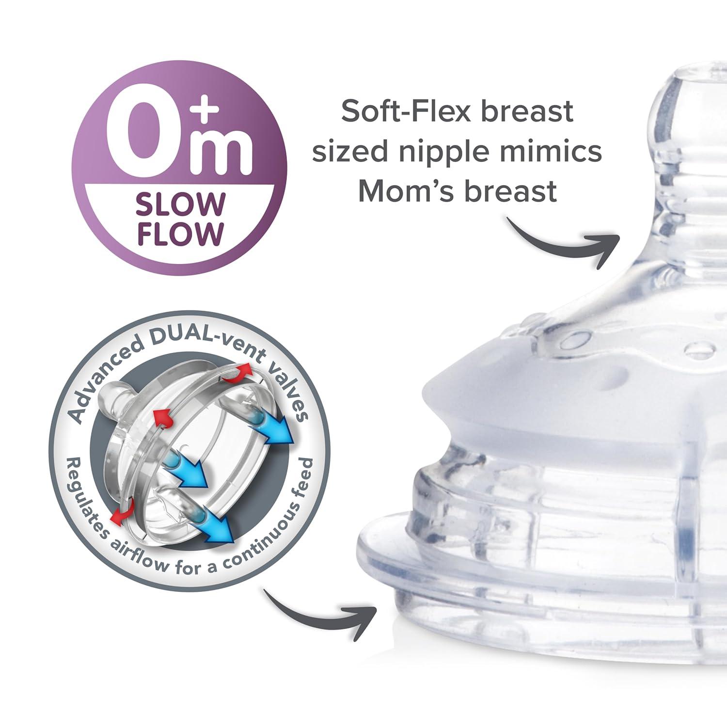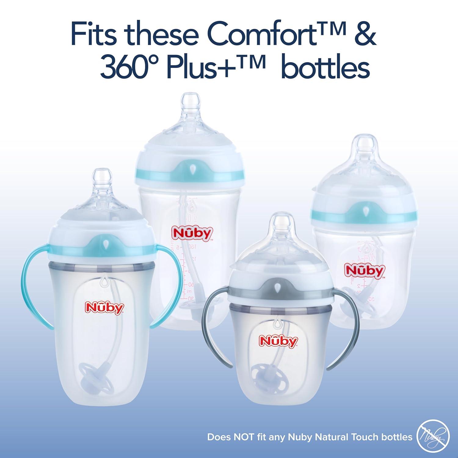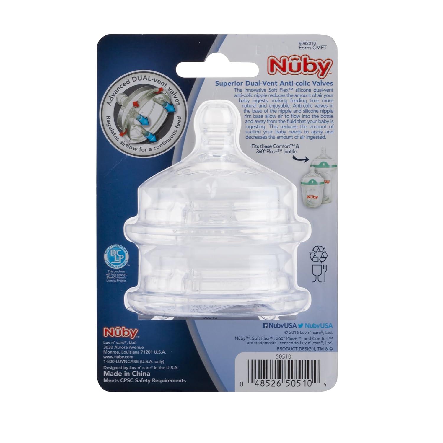 The unique Advanced Dual Vent Valve System reduces colic symptoms. Simple-Latch Nipple for a more Natural Transition between breast and bottle. Breast-like shape and skin-like feel. FOR NUBY COMFORT BOTTLES ONLY. WILL NOT FIT THE NUBY NATURAL TOUCH BOTTLES.