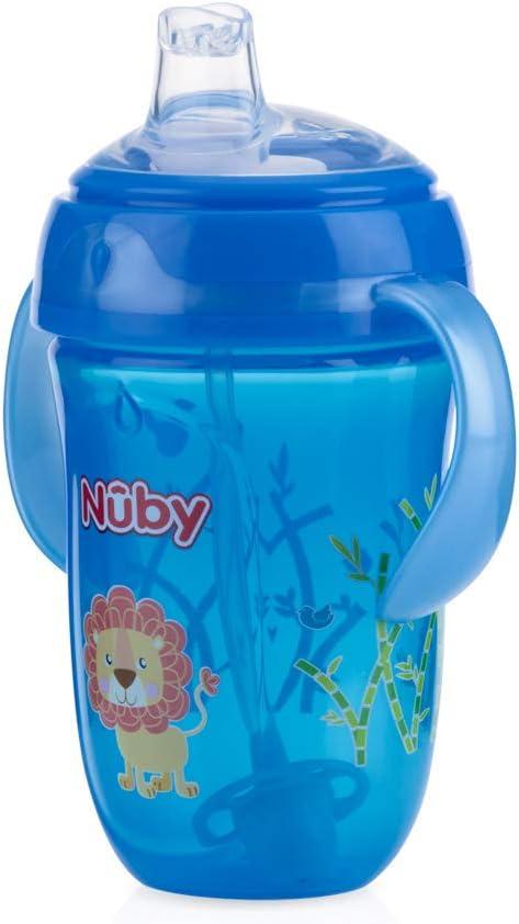Nuby's Comfort 360 Plus Trainer Cup is suitable for babies 4+ months. The Nuby Comfort 360 Plus Trainer Cup features a silicone spout, pressure-sensitive Touch-Flo valve, 360-degree weighted straw, and upright Easy Grip handles for comfortable, spill-free drinking. The Touch-Flo valve opens when your child drinks from the cup. When the sucking action stops, the valve closes, preventing dribbles and spills. The 360-weighted straw tilts with the cup and follows the liquid inside, allowing your little one to drink to the last drop in whatever position they prefer. The two-handle design makes gripping easier as your child's hand strength and coordination grow and improve. The cup is easy to clean, making it the perfect cup for both parents and beginner self-feeders. All Nuby products are made of safe, durable materials and exceed all government safety regulations.