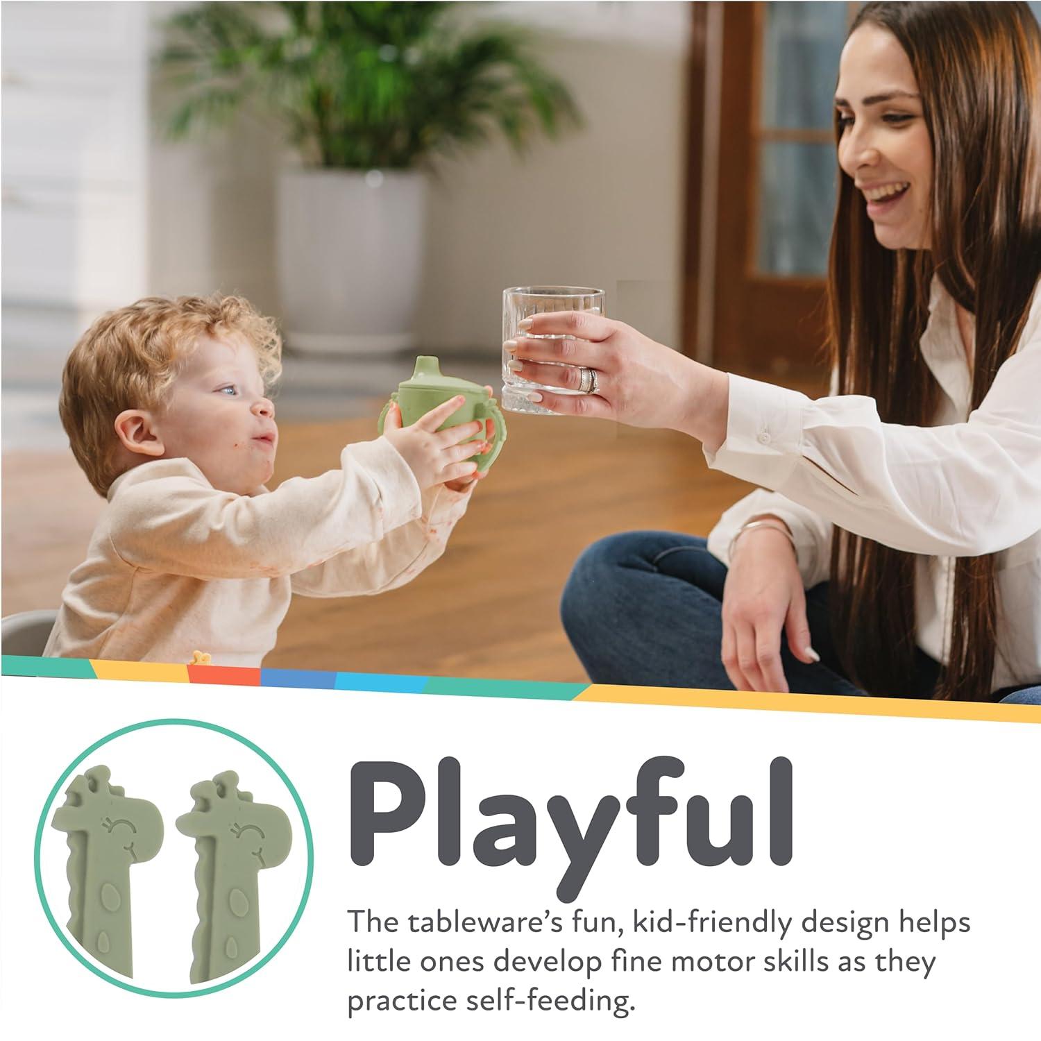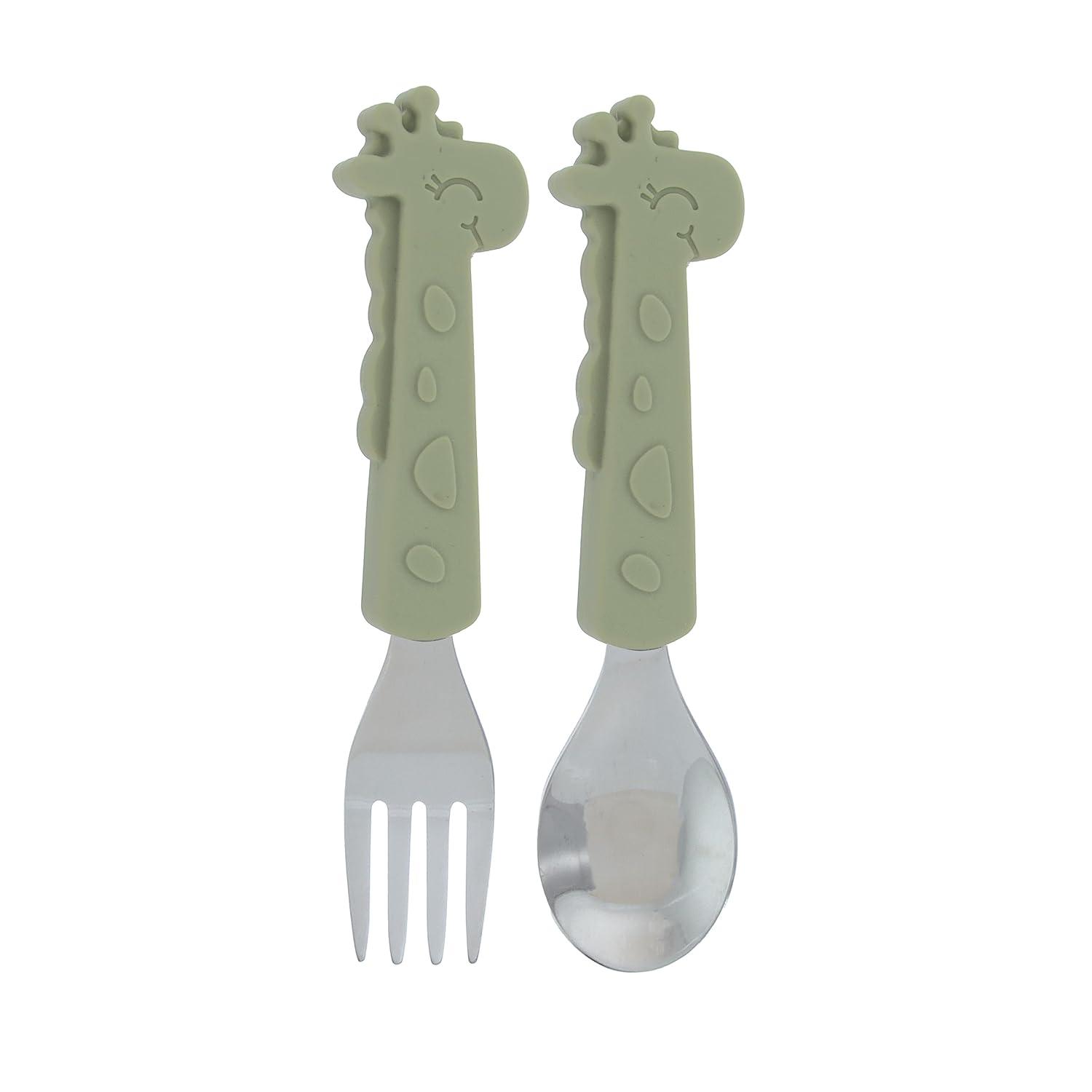 Nuby Animal Friends Silicone and Stainless Steel Fork and Spoon Set – 12+ Months – Pink Whale(Green Giraffe)