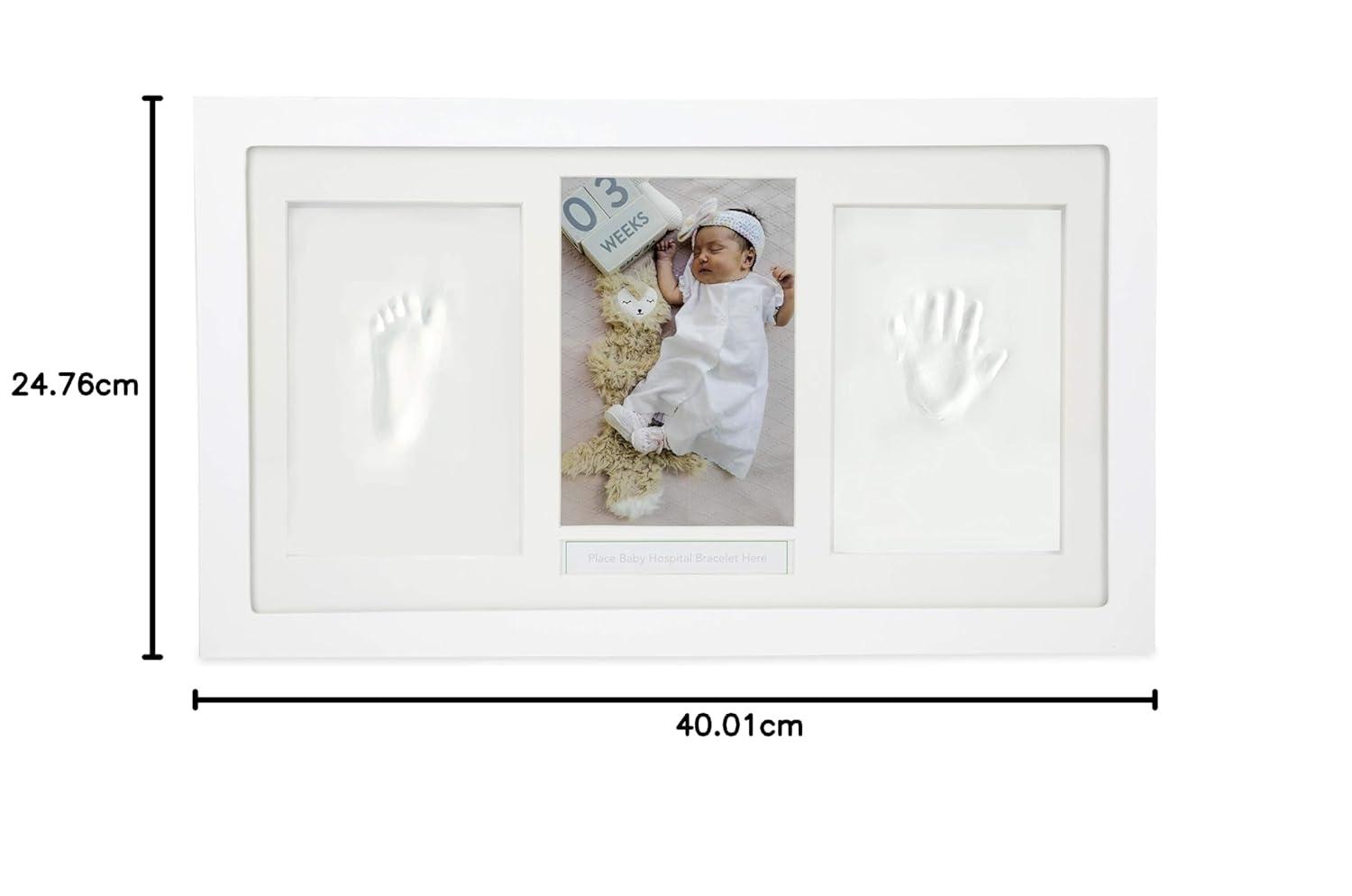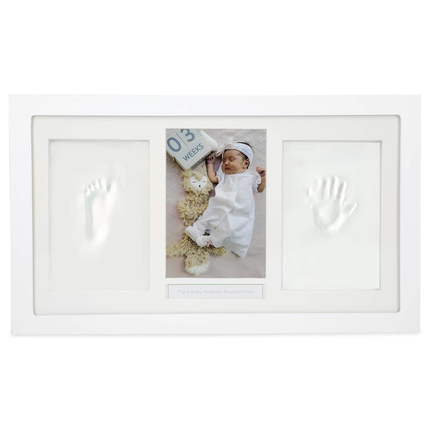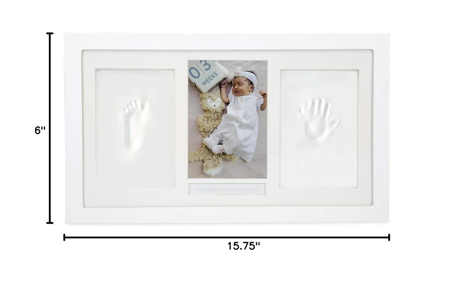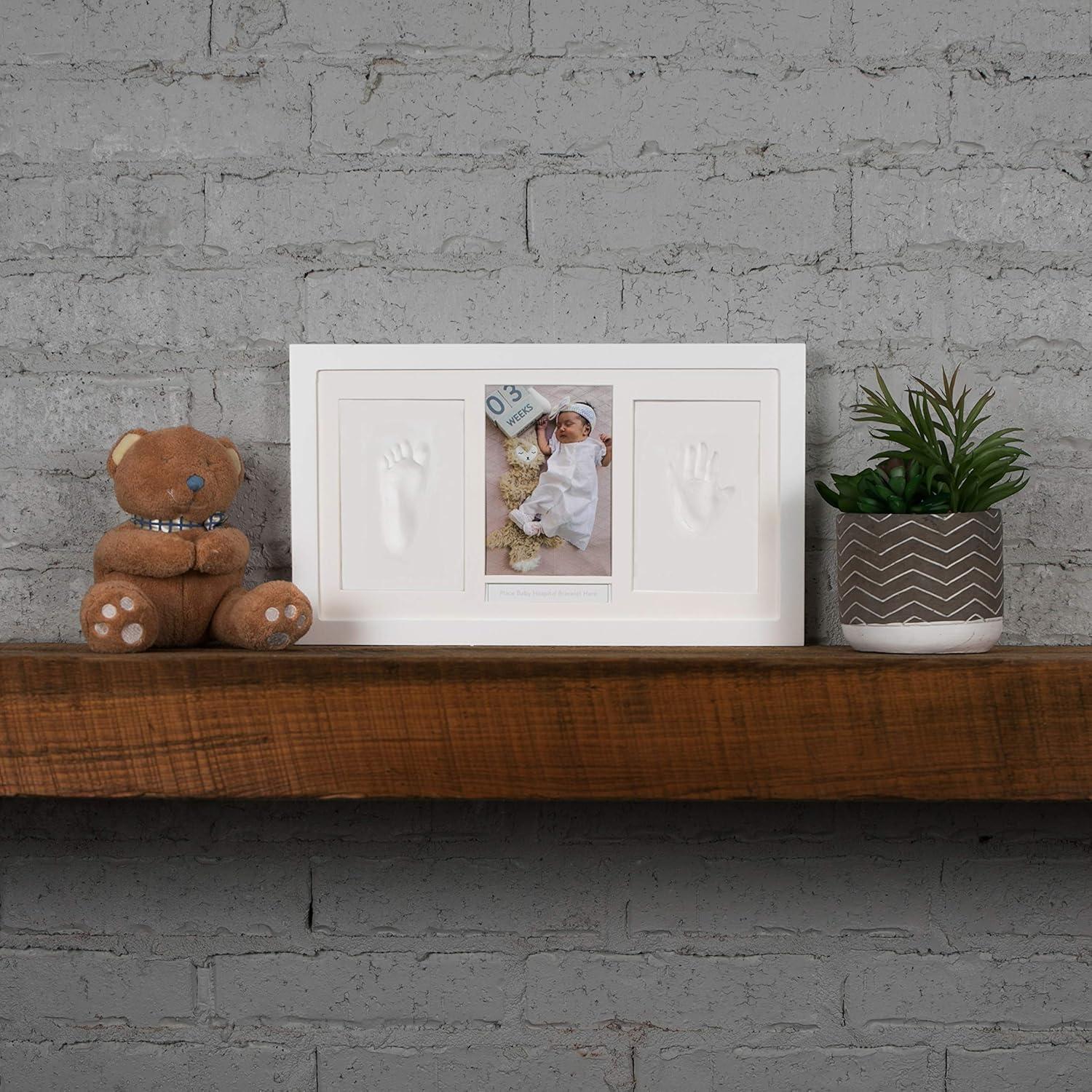 Nuby Baby Hand & Footprint Kit with Classic White Wooden Frame That Holds Two 3 x 3″ Photos Plus 1 Clay Print Kit for Newborn Girls & Boys(Wall Décor Frame)