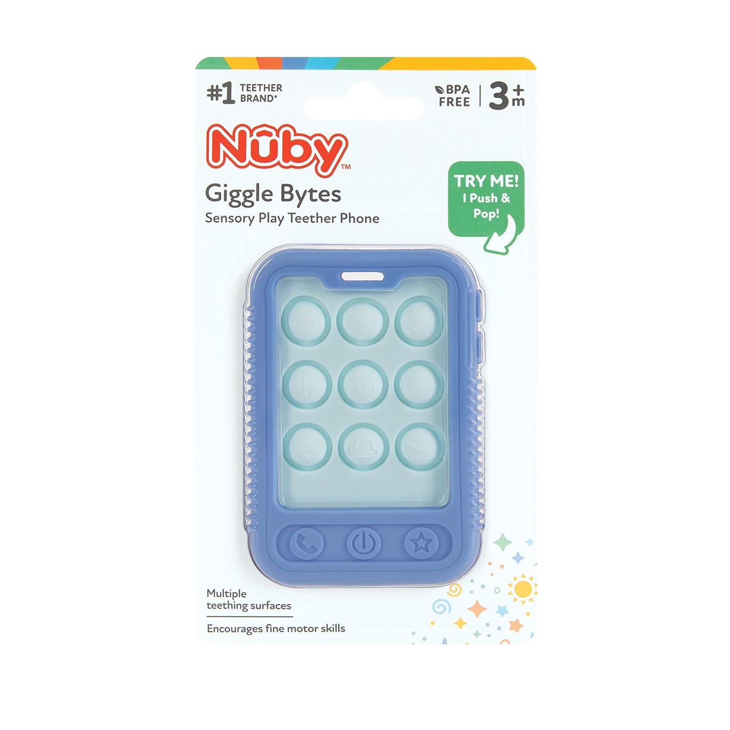 Our Nuby Giggle Bytes Sensory Popper Cellphone is a fun and interactive teether toy for babies ages 3 months and older. This teething toy is made of 100% soft silicone for sensitive, tender mouths, and provides teething relief without being rough on delicate gums. The multiple teething surfaces and sensory pop bubbles of this teething toy help encourage tactile exploration and help develop your little one's fine motor skills. Our Nuby teething toy is easy to clean and thoughtfully designed for little hands to grasp and hold. Nuby helps make the teething process just a little easier for you and your little one!