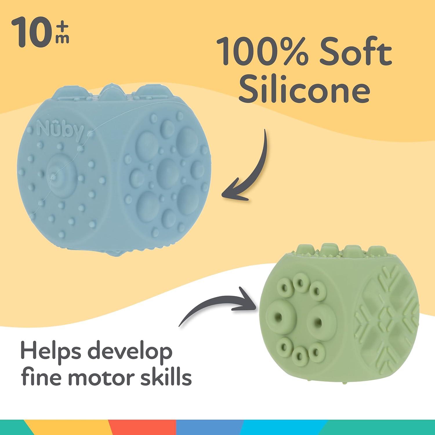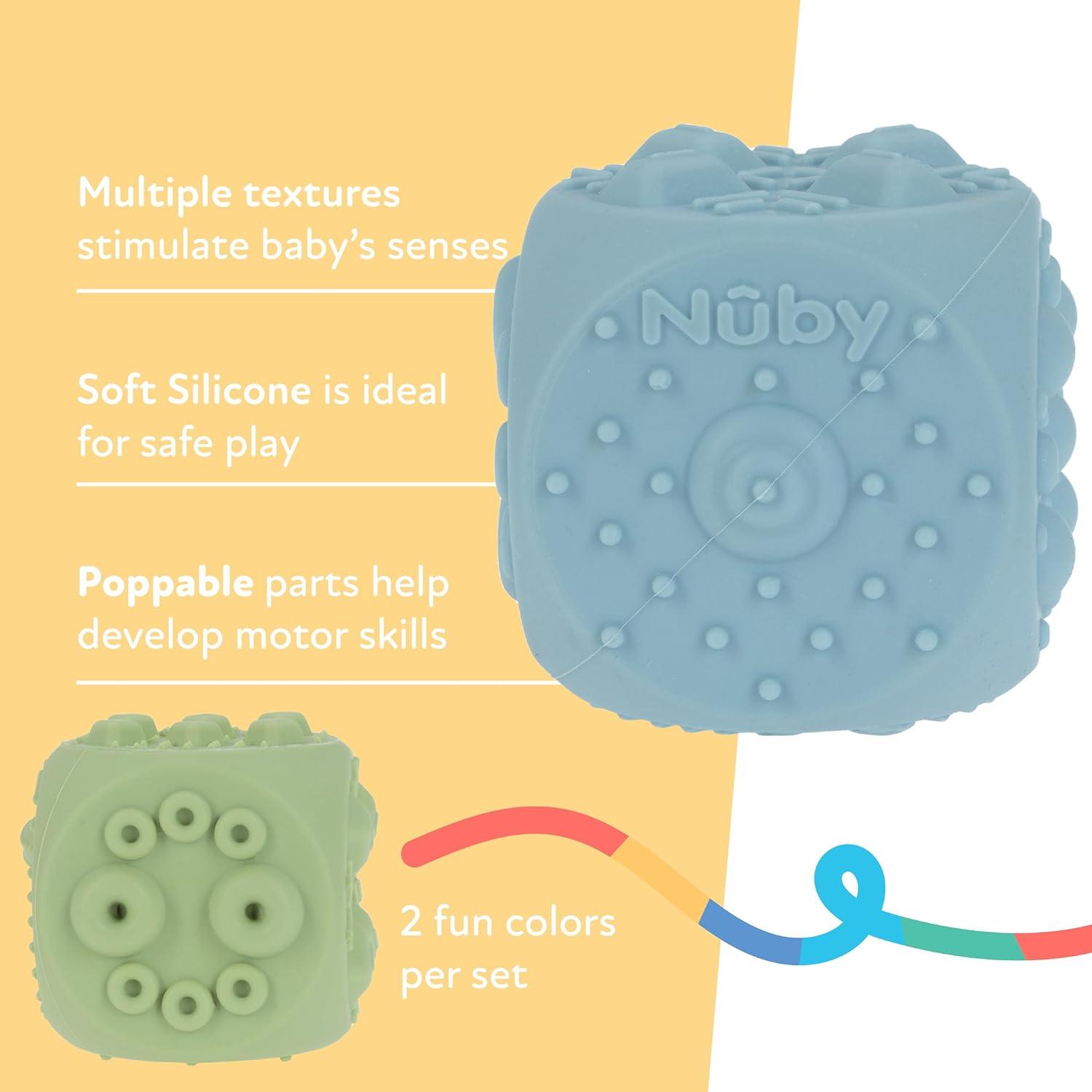 Nuby Baby Teething Toy, 3+ Months, Giggle Bytes Sensory Popper Cellphone, Aqua(Blue & Green Block Poppers)