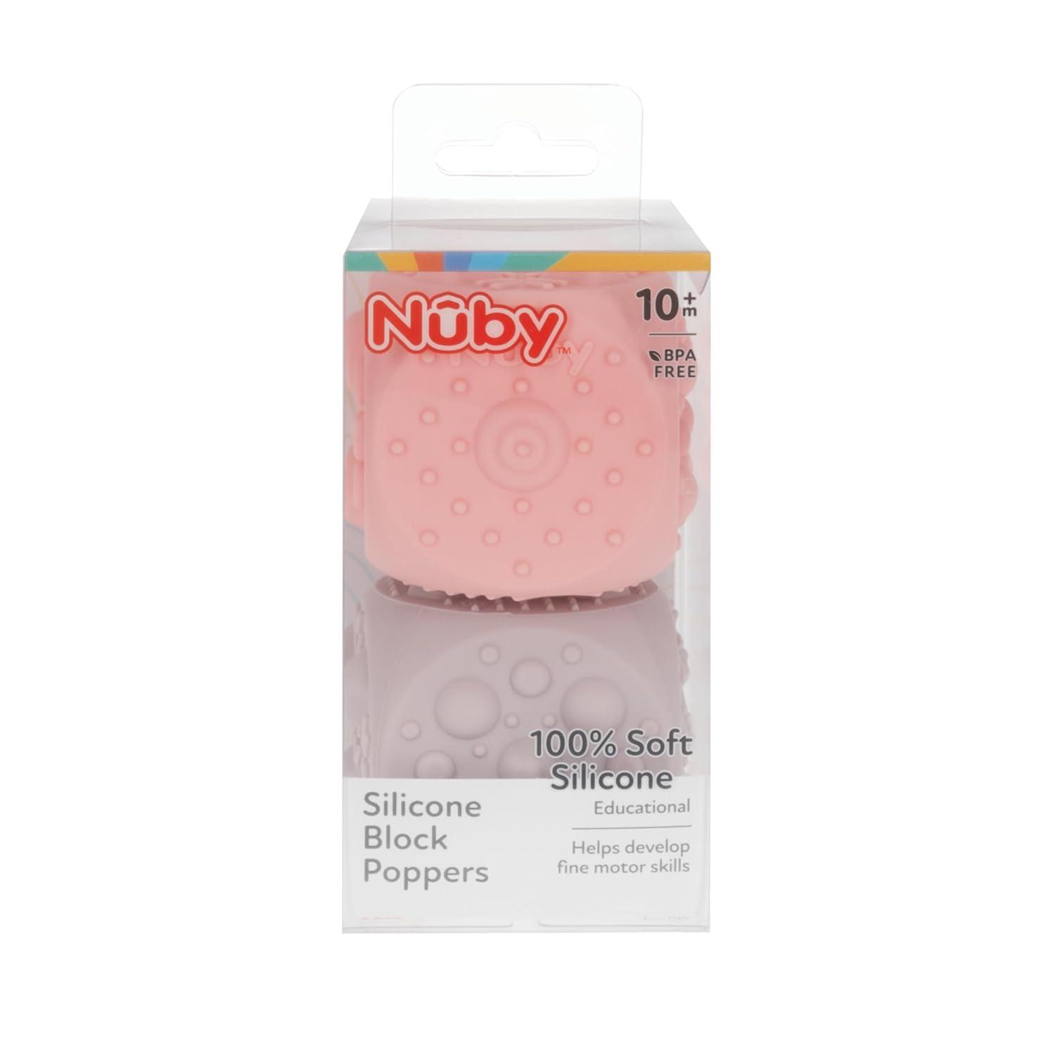 Nuby Baby Teething Toy, 3+ Months, Giggle Bytes Sensory Popper Cellphone, Aqua(Pink & Purple Block Poppers)