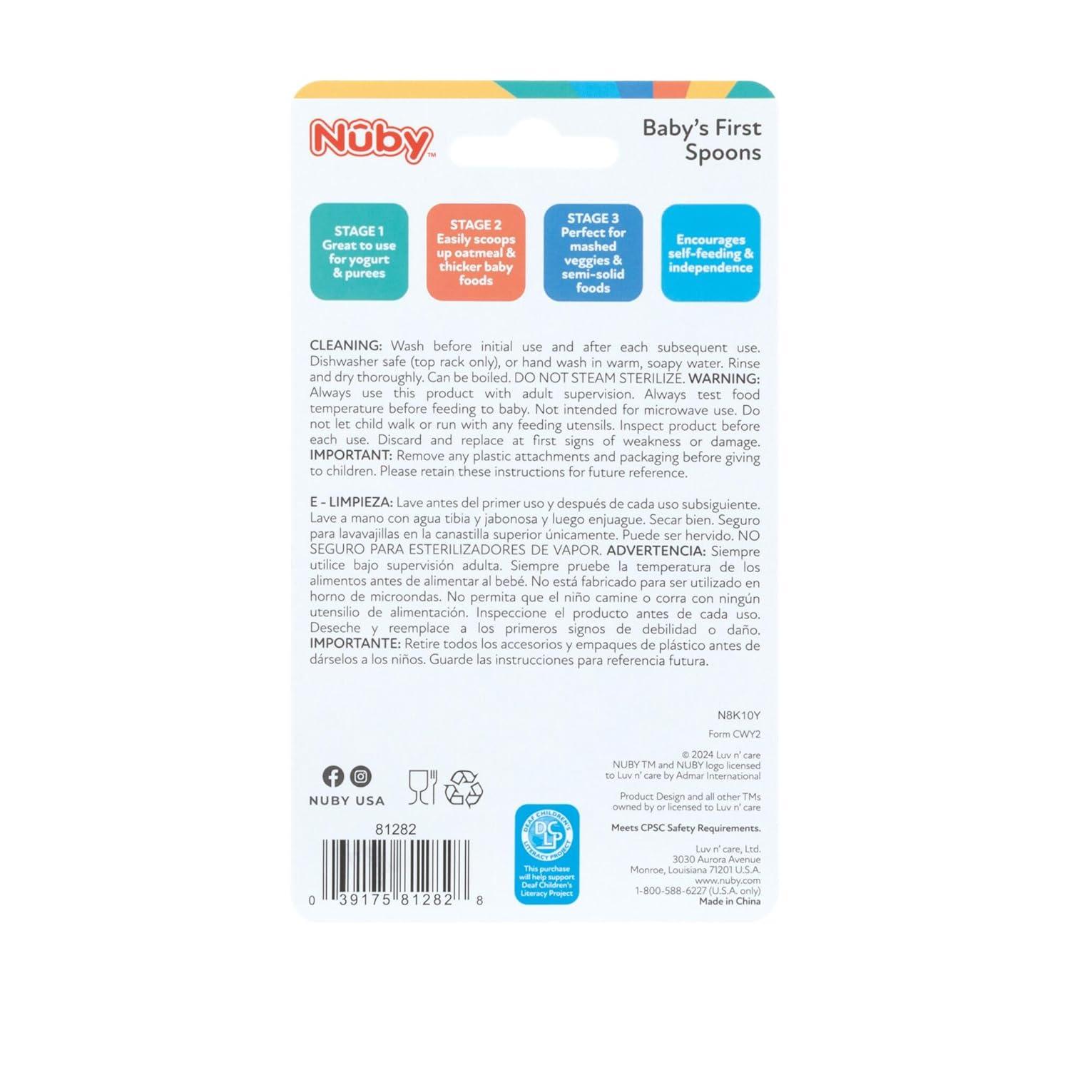 SPOON SET FOR BABIES 6+ MONTHS: Nuby Baby's First Spoons empower little ones to embrace self-feeding and enhance their motor skills from 6+ months onward