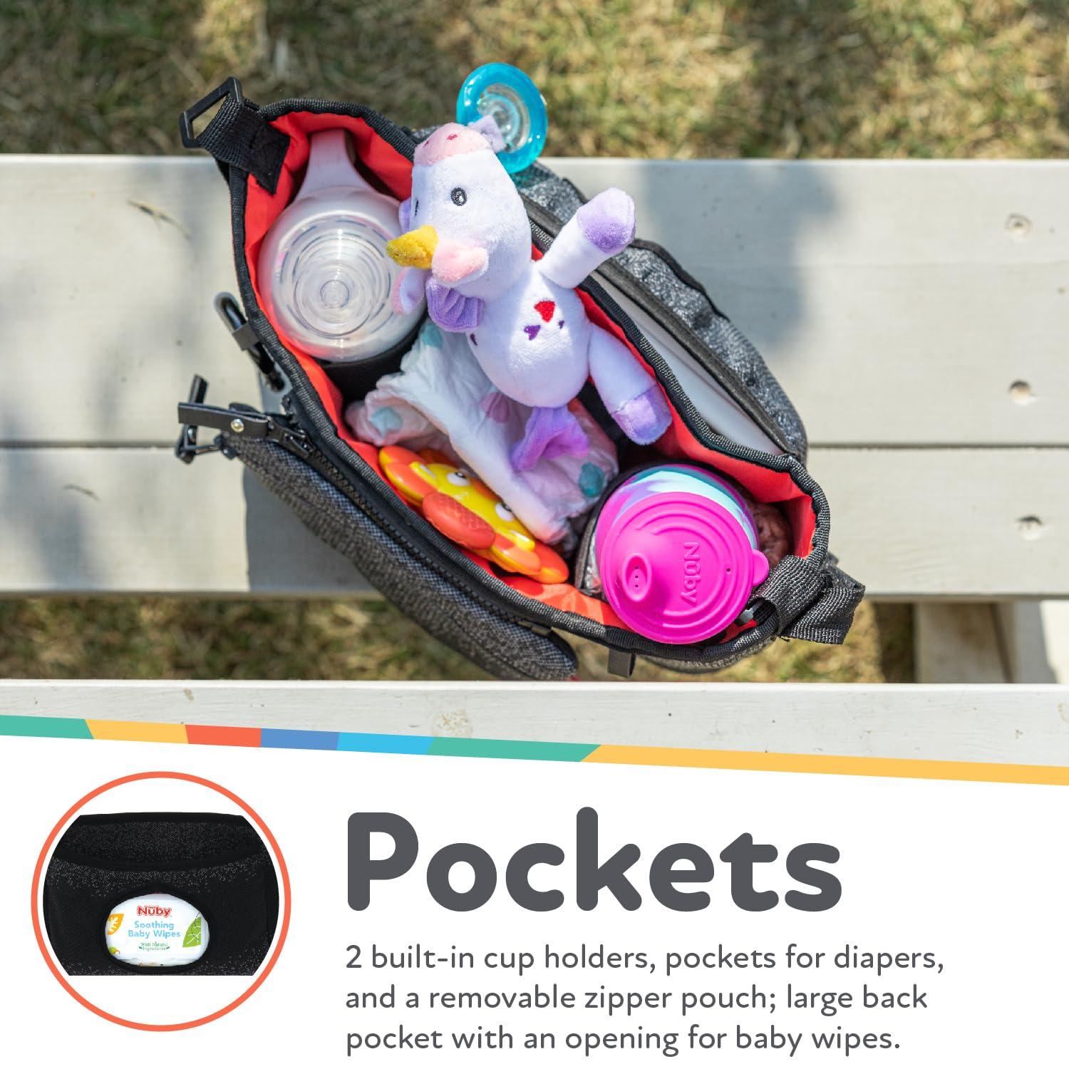 Nuby Eco Baby Stroller Organizer – Includes Carabiner – Stroller Accessories for Babies and Toddlers – Black