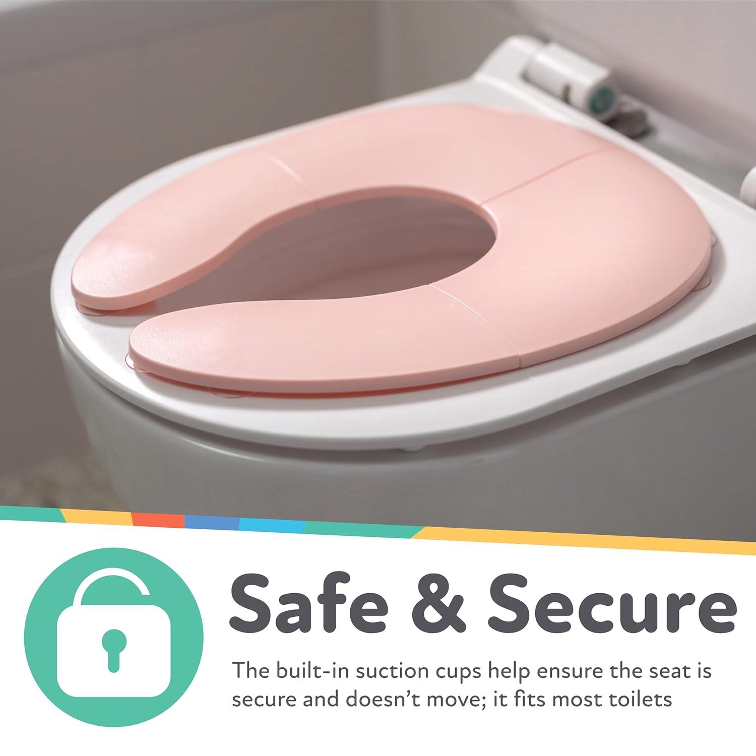 BUILT-IN SAFETY: The Folding Potty Seat has built-in suction cups that help ensure the seat securely stays put for little ones; Fits standard toilet seats; Easy to clean up for parents' convenience