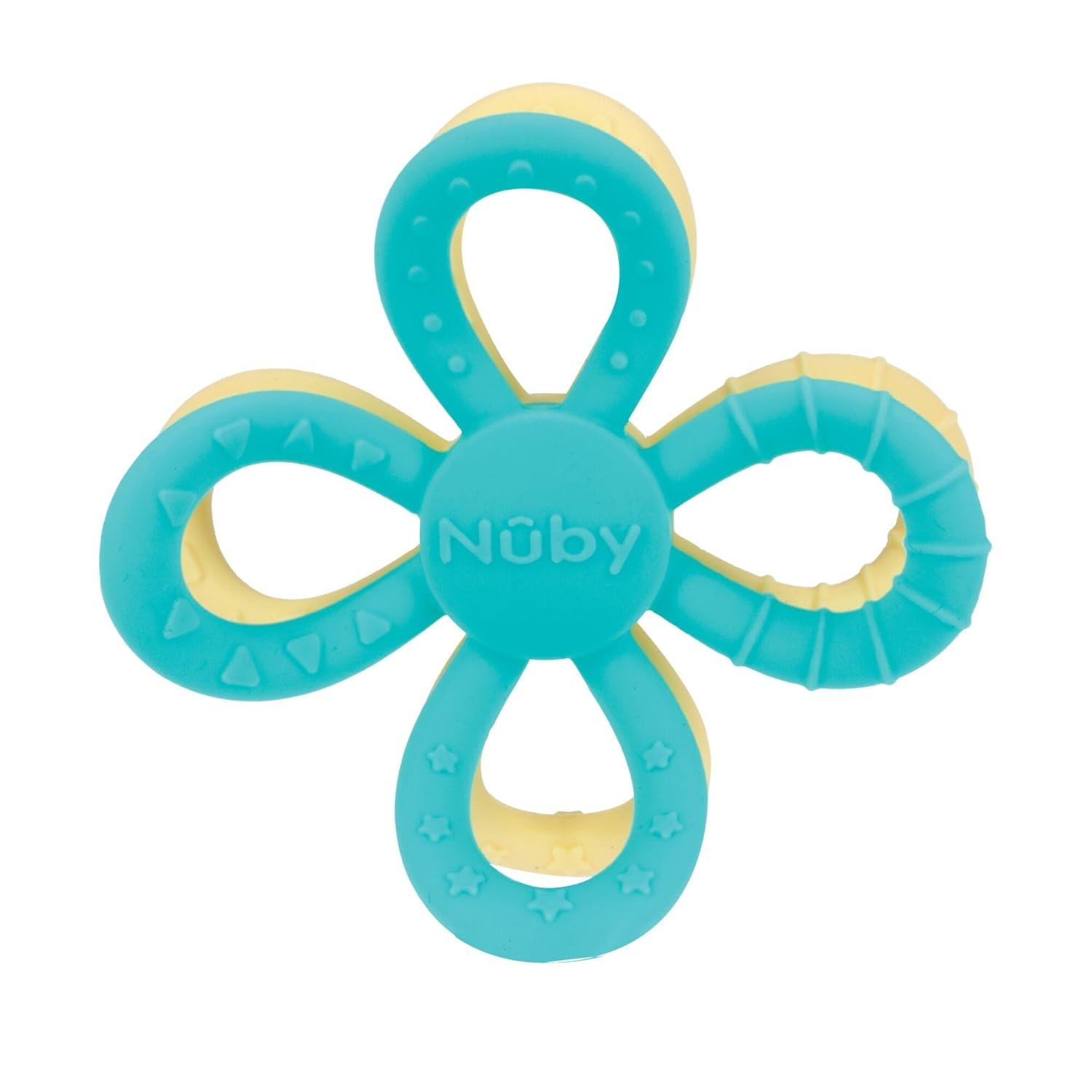 This flower-shaped infant teething toy engages babies aged 3 months and up, providing interactive relief for their uncomfortable gums. Crafted from 100% soft silicone, this Nuby teething aid offers gentle relief without causing irritation to delicate mouths. Vibrant colors, a playful shape, and intriguing textures capture your little one's attention, stimulating both sight and touch. Tuck this essential into your baby's diaper bag or stroller for on-the-go relief whenever it's needed. At Nuby, our mission is to make the teething journey a bit smoother for both you and your little one!