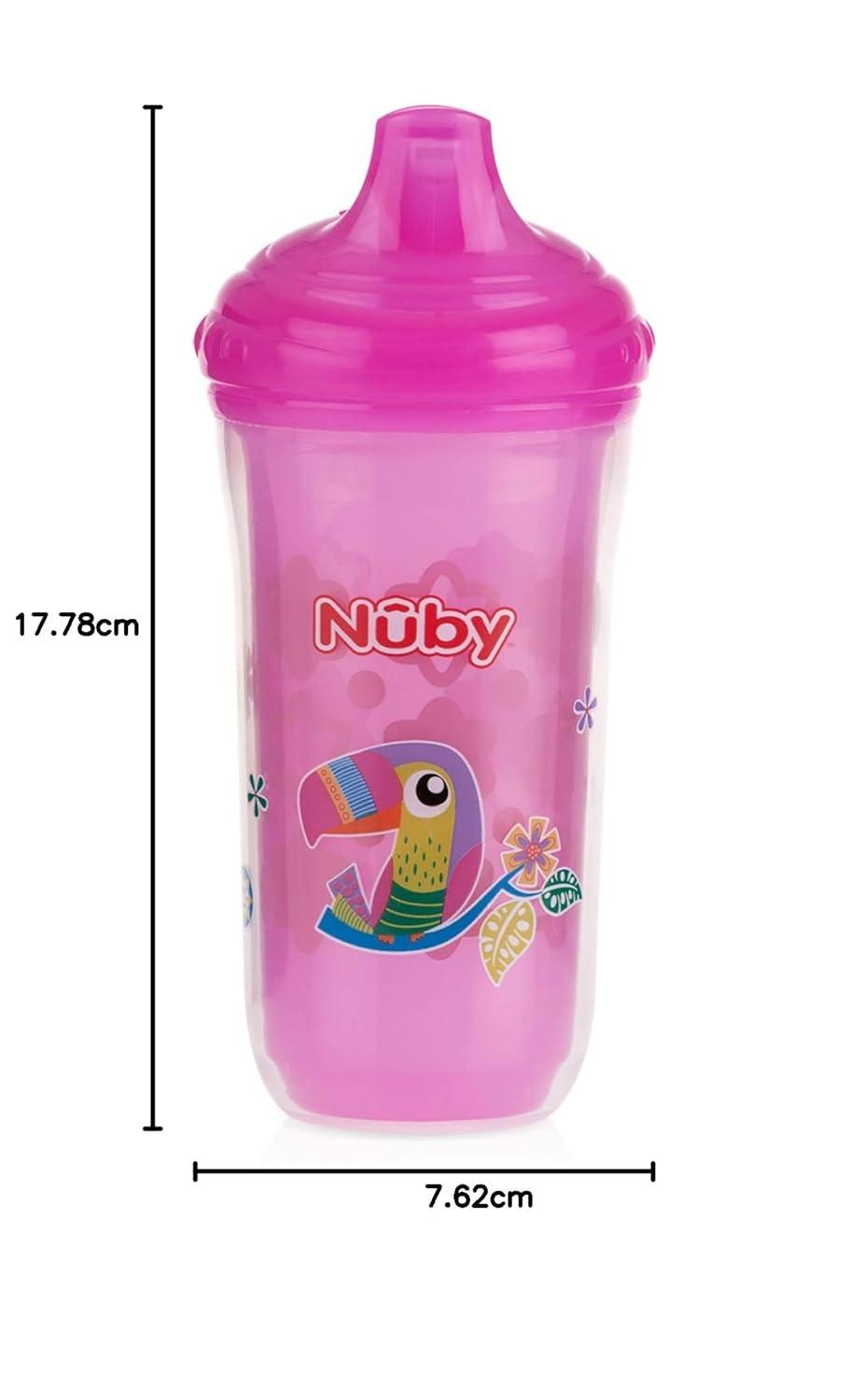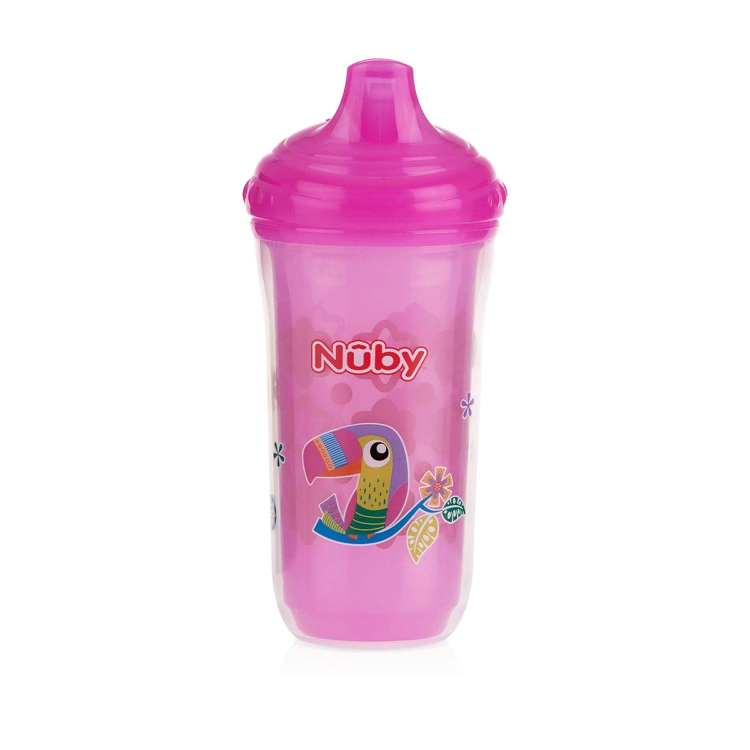 Nuby’s No-Spill Insulated Easy Sip Cup uses double-wall insulation to keep liquids fresh and cool, while also protecting furniture from a “sweating” cup. Designed to make drinking and handling easier, the No-Spill Insulated Easy Sip Cup is sized to fit your child's grasp. It's made of safe, durable materials and comes in a variety of colors and patterns that will delight your child. The No-Spill hard spout features a Vari-Flo valve system engineered to help protect against spills or leaks. Liquids pass through the spout only when your child sips. The bite-proof hard spout is constructed to hold up to chew-prone little ones. Nuby’s No-Spill Insulated Easy Sip Cup holds up to 9oz/270ml of liquid so children will have no problems staying hydrated. Stay spill-free and secure in your decision to use Nuby’s No-Spill Insulated Easy Sip Cup.