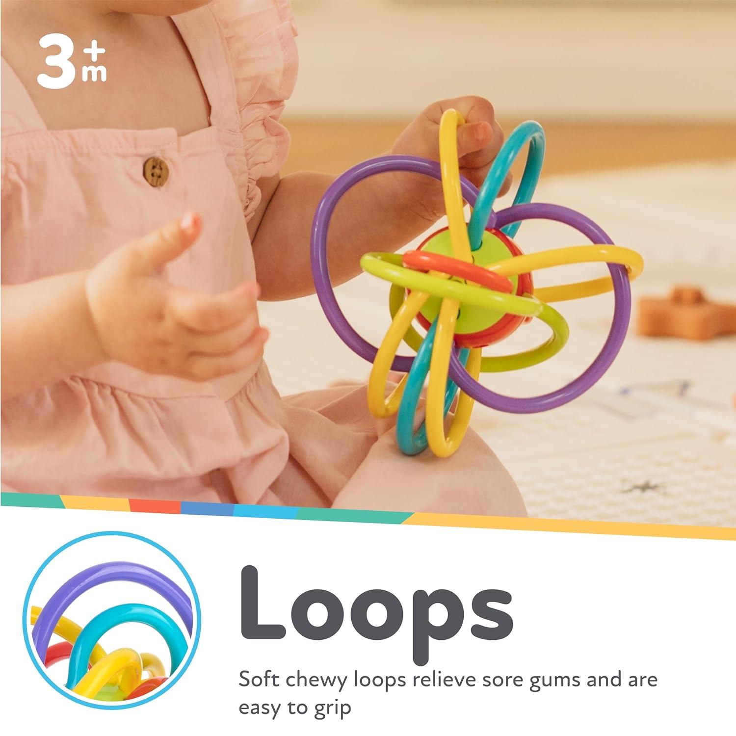 Nuby Lots A Loops Sensory Multicolor Teether and Baby Rattle Toy – 3+ Months – Baby Teething Toy(Multi)