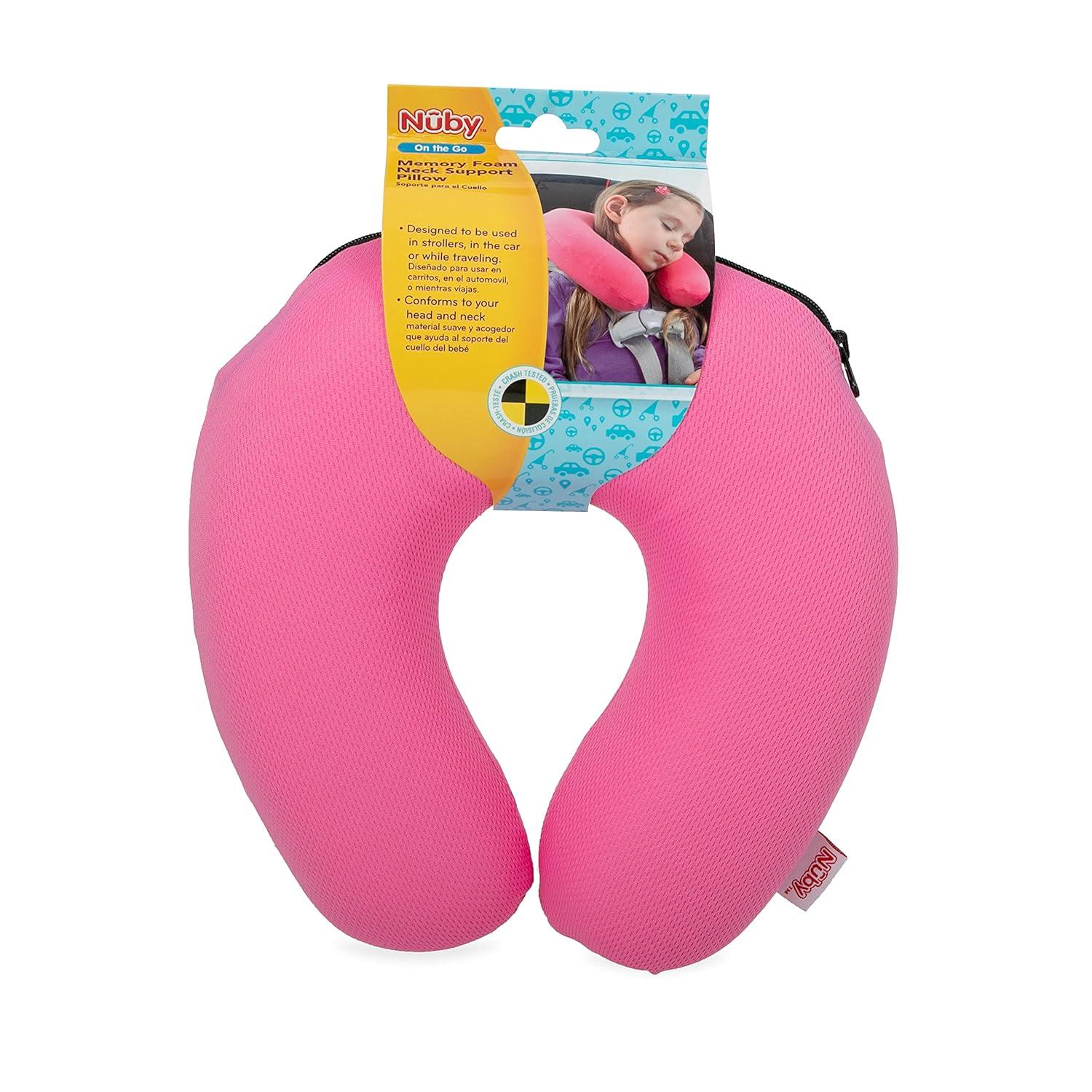 The Nuby Memory Foam Travel Pillow is a lightweight and compact travel neck pillow designed with your child's safety, convenience, and comfort in mind. This travel neck pillow is made with plush memory foam to make travel more comfortable for you and your child. The soft memory foam cradles and supports your child's neck, preventing uncomfortable angles and head bouncing during travel. We believe your child's safety is always a priority. It's also machine washable and features a zip enclosure for easy and thorough cleaning after travel. Our Nuby pillows are thoughtfully designed for little hands to explore. Make travel time just a little easier for you and your kids with the Nuby Memory Foam Travel Pillow!