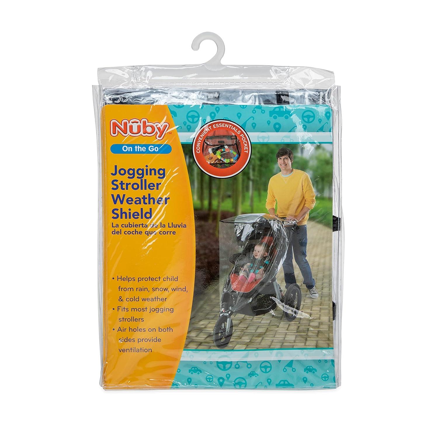Nuby Travel System Weather Shield, Clear Plastic Stroller Cover with Storage Pocket & Vented Sides(Jogging Stroller Shield)